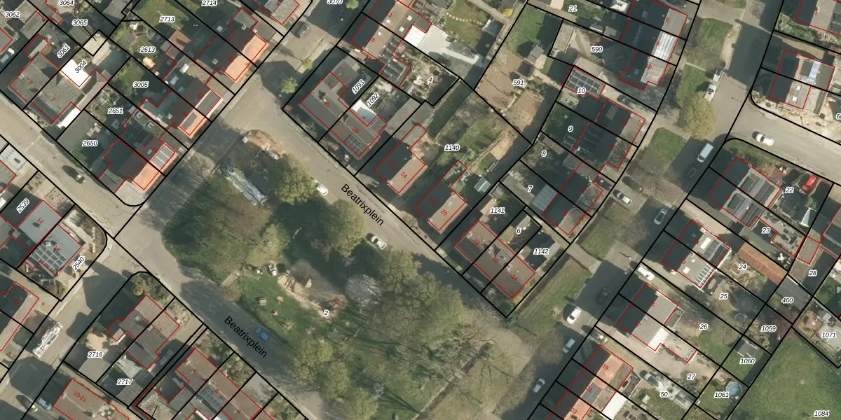 Het perceel waarop Beatrixplein 22 staat heeft een oppervlakte van 873 m². Dit is een groot perceel. De perceeloppervlakte wordt geregistreerd door het Kadaster. Gedetailleerde informatie over de maten van dit perceel kunt u vinden in het rapport Kadastrale kaart met maatvoering van Beatrixplein 22.