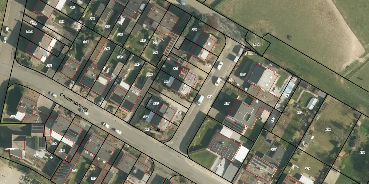 Gebruik de zoekbalk of klik op een perceel voor informatie over de adressen binnen dit perceel.