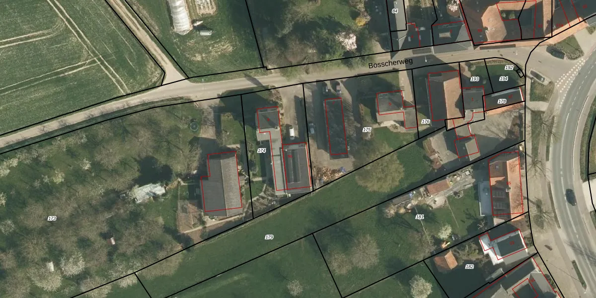 Bosscherweg 9-a is gelegen op kadastraal perceel NUT00L174. Deze kadastrale aanduiding is uniek en wordt gebruikt door het Kadaster om eigendomsrechten en andere zakelijke rechten vast te leggen. Het perceel maakt onderdeel uit van de kadastrale gemeente Nuth.