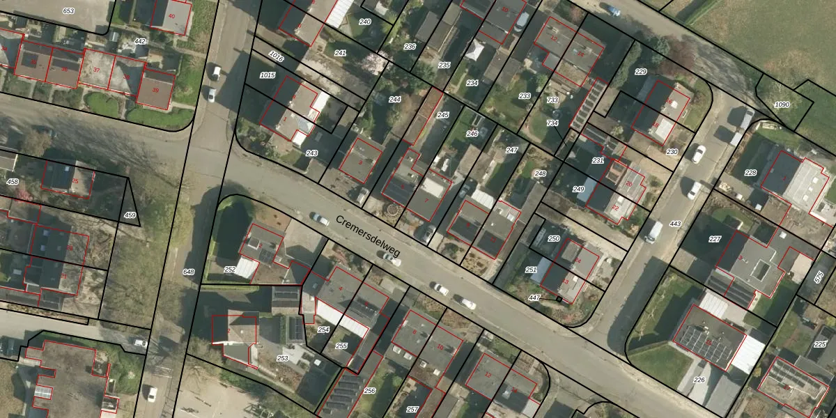Cremersdelweg 7 is gelegen op kadastraal perceel HBG02E246. Deze kadastrale aanduiding is uniek en wordt gebruikt door het Kadaster om eigendomsrechten en andere zakelijke rechten vast te leggen. Het perceel maakt onderdeel uit van de kadastrale gemeente Hulsberg.