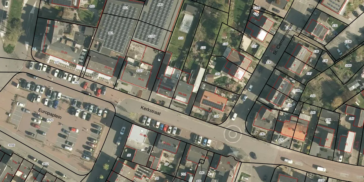Kerkstraat 33-b is gelegen op kadastraal perceel HBG02E113. Deze kadastrale aanduiding is uniek en wordt gebruikt door het Kadaster om eigendomsrechten en andere zakelijke rechten vast te leggen. Het perceel maakt onderdeel uit van de kadastrale gemeente Hulsberg.
