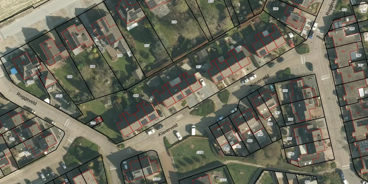 Het perceel waarop Klaverveld 13 staat heeft een oppervlakte van 2990 m². Dit is een zeer groot perceel. De perceeloppervlakte wordt geregistreerd door het Kadaster. Gedetailleerde informatie over de maten van dit perceel kunt u vinden in het rapport Kadastrale kaart met maatvoering van Klaverveld 13.