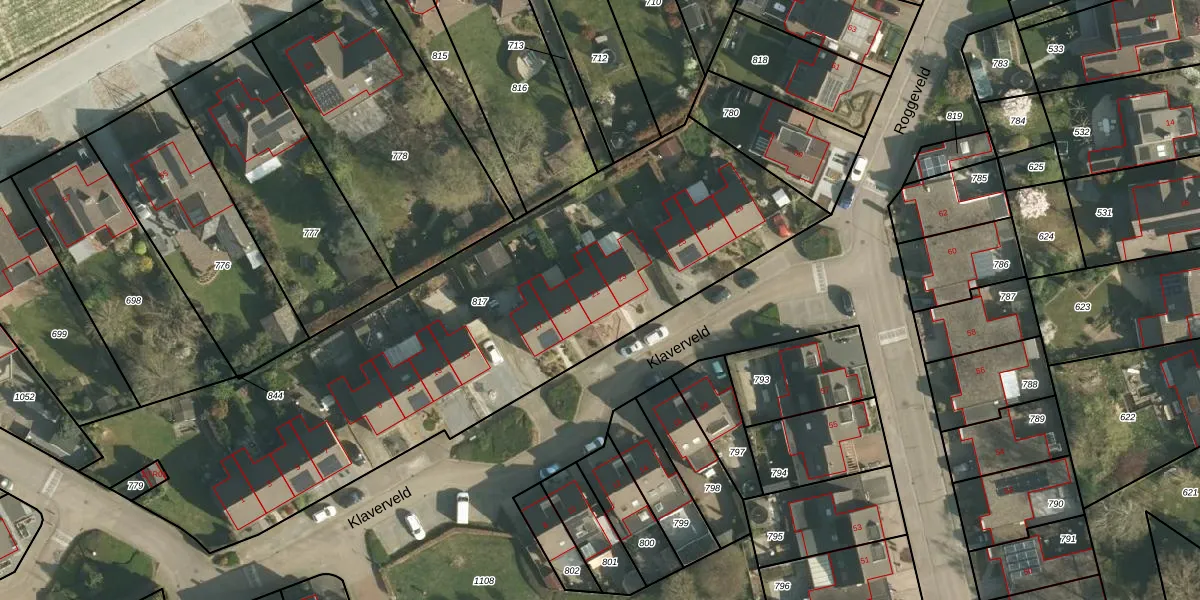 Het perceel waarop Klaverveld 21 staat heeft een oppervlakte van 2990 m². Dit is een zeer groot perceel. De perceeloppervlakte wordt geregistreerd door het Kadaster. Gedetailleerde informatie over de maten van dit perceel kunt u vinden in het rapport Kadastrale kaart met maatvoering van Klaverveld 21.