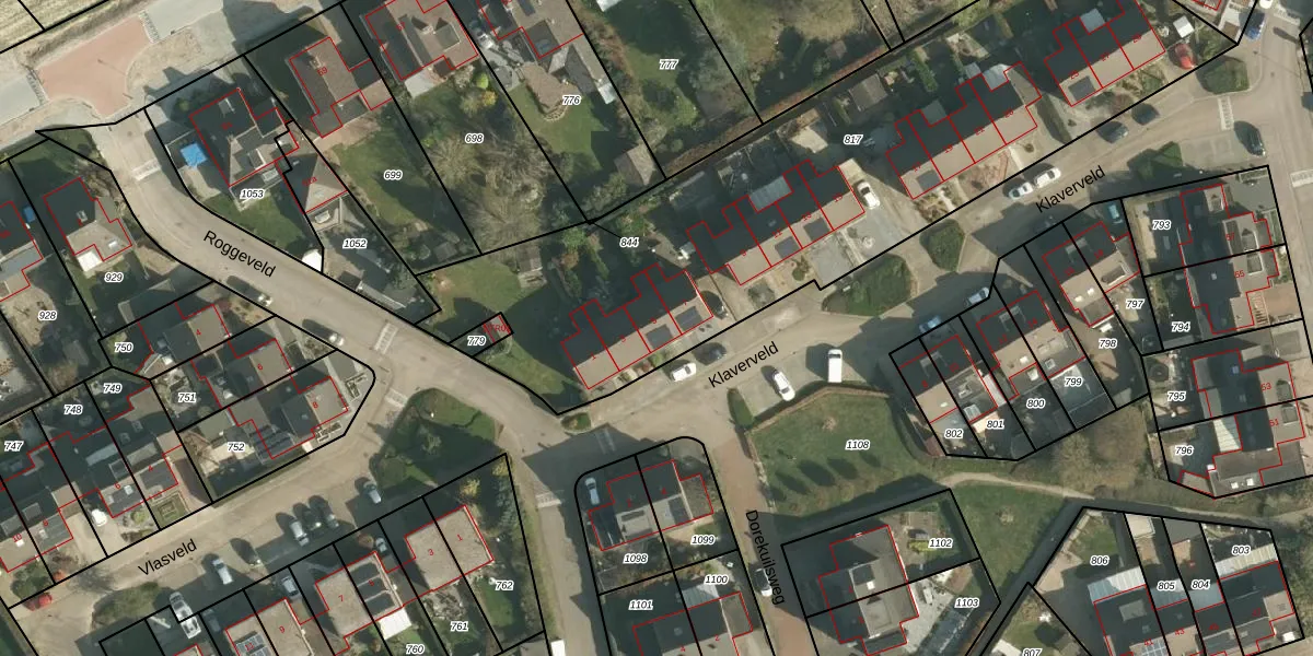 Het perceel waarop Klaverveld 5 staat heeft een oppervlakte van 2990 m². Dit is een zeer groot perceel. De perceeloppervlakte wordt geregistreerd door het Kadaster. Gedetailleerde informatie over de maten van dit perceel kunt u vinden in het rapport Kadastrale kaart met maatvoering van Klaverveld 5.
