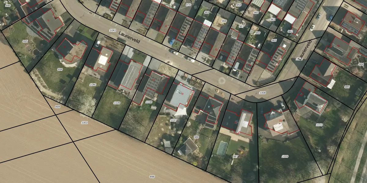 Het perceel waarop Laurierveld 16 staat heeft een oppervlakte van 709 m². Dit is een groot perceel. De perceeloppervlakte wordt geregistreerd door het Kadaster. Gedetailleerde informatie over de maten van dit perceel kunt u vinden in het rapport Kadastrale kaart met maatvoering van Laurierveld 16.