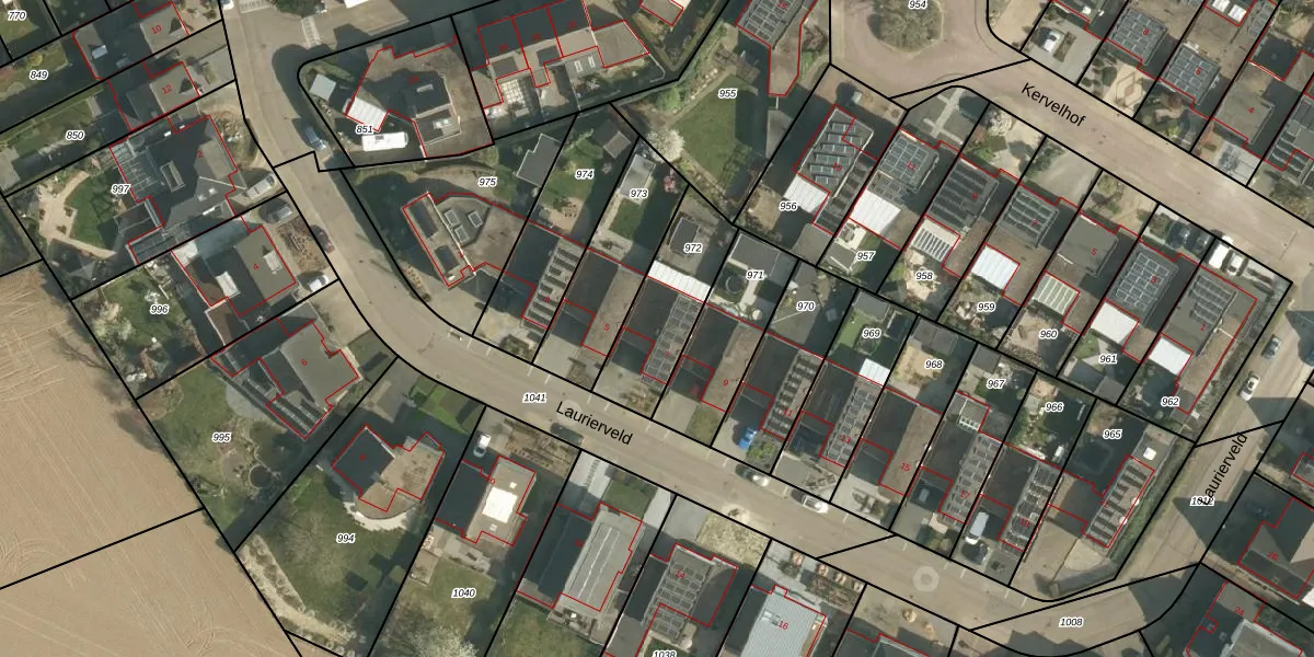 Het perceel waarop Laurierveld 7 staat heeft een oppervlakte van 331 m². Dit is een groot perceel. De perceeloppervlakte wordt geregistreerd door het Kadaster. Gedetailleerde informatie over de maten van dit perceel kunt u vinden in het rapport Kadastrale kaart met maatvoering van Laurierveld 7.