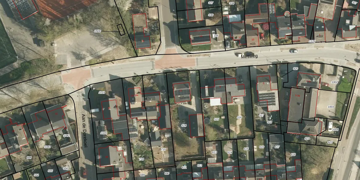 Het perceel waarop Mesweg 11 staat heeft een oppervlakte van 884 m². Dit is een groot perceel. De perceeloppervlakte wordt geregistreerd door het Kadaster. Gedetailleerde informatie over de maten van dit perceel kunt u vinden in het rapport Kadastrale kaart met maatvoering van Mesweg 11.