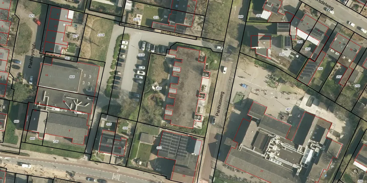 Panhuisweg 15 is gelegen op kadastraal perceel HBG02E855. Deze kadastrale aanduiding is uniek en wordt gebruikt door het Kadaster om eigendomsrechten en andere zakelijke rechten vast te leggen. Het perceel maakt onderdeel uit van de kadastrale gemeente Hulsberg.