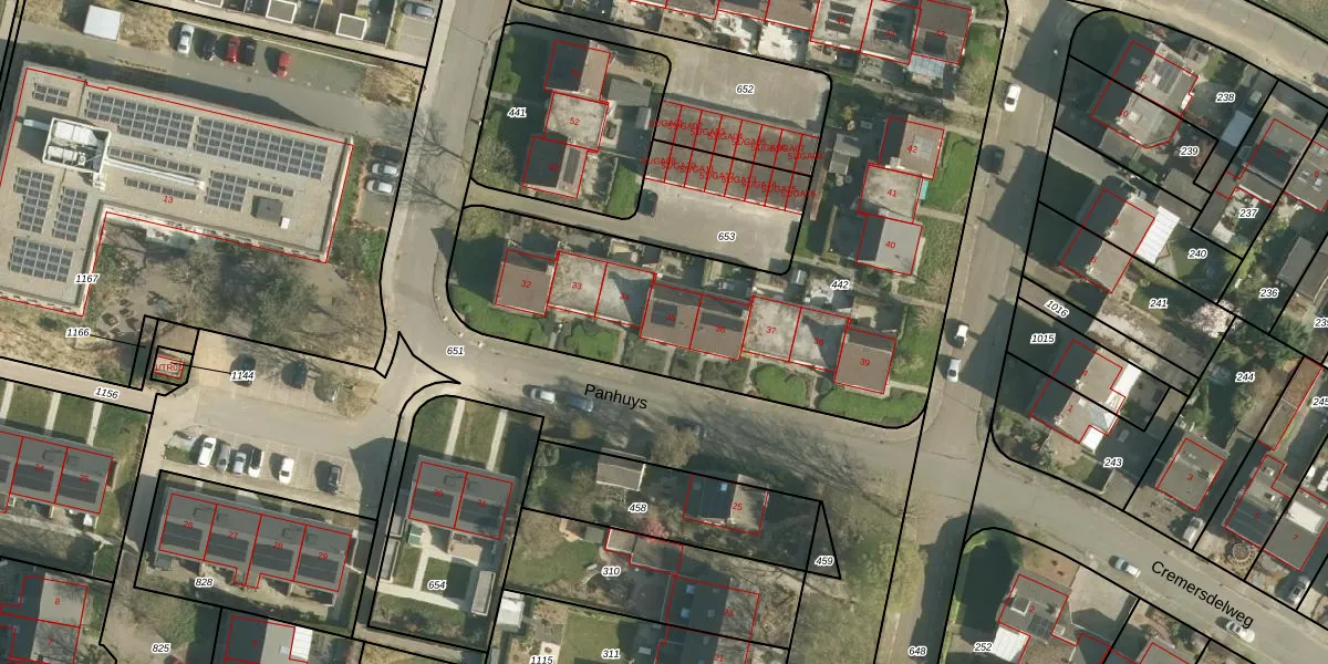 Het perceel waarop Panhuys 35 staat heeft een oppervlakte van 3495 m². Dit is een zeer groot perceel. De perceeloppervlakte wordt geregistreerd door het Kadaster. Gedetailleerde informatie over de maten van dit perceel kunt u vinden in het rapport Kadastrale kaart met maatvoering van Panhuys 35.