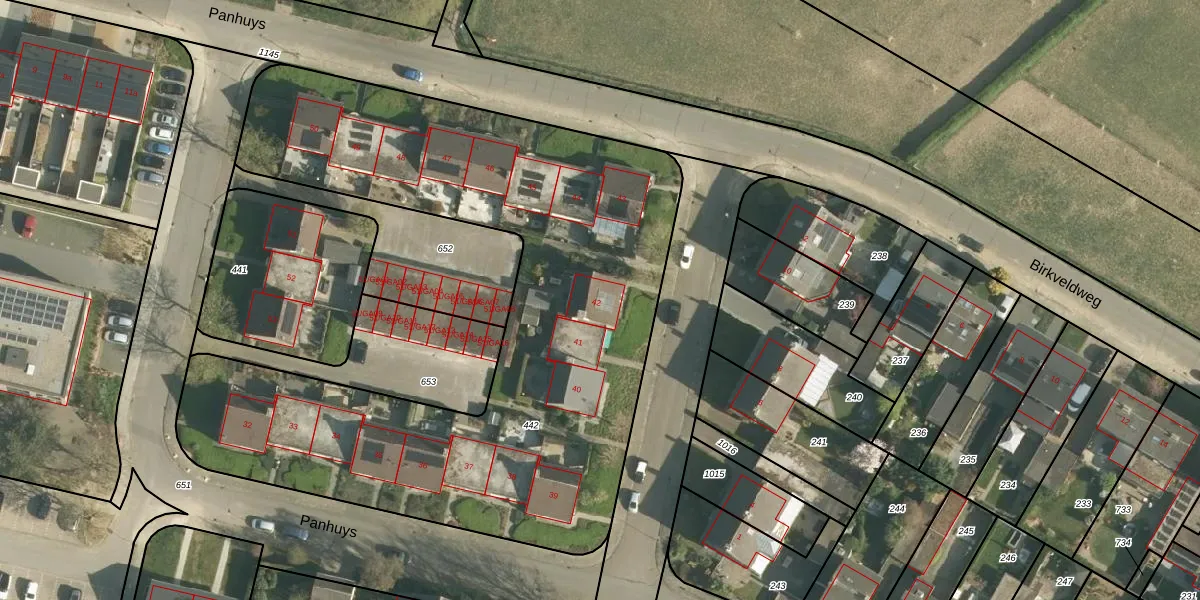 Het perceel waarop Panhuys 42 staat heeft een oppervlakte van 3495 m². Dit is een zeer groot perceel. De perceeloppervlakte wordt geregistreerd door het Kadaster. Gedetailleerde informatie over de maten van dit perceel kunt u vinden in het rapport Kadastrale kaart met maatvoering van Panhuys 42.