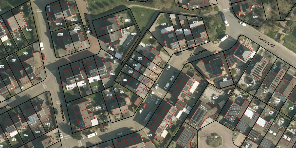 Gebruik de zoekbalk of klik op een perceel voor informatie over de adressen binnen dit perceel.