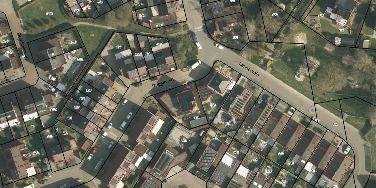 Het perceel waarop Roggeveld 36 staat heeft een oppervlakte van 423 m². Dit is een groot perceel. De perceeloppervlakte wordt geregistreerd door het Kadaster. Gedetailleerde informatie over de maten van dit perceel kunt u vinden in het rapport Kadastrale kaart met maatvoering van Roggeveld 36.