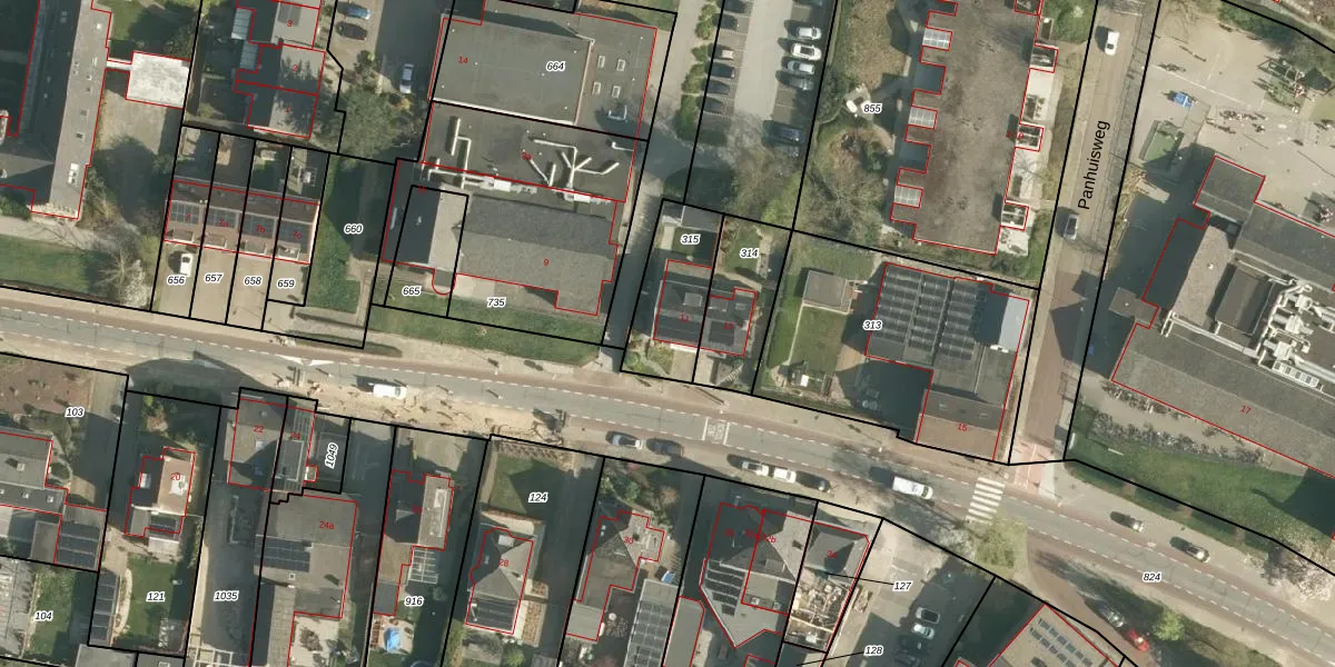 Gebruik de zoekbalk of klik op een perceel voor informatie over de adressen binnen dit perceel.