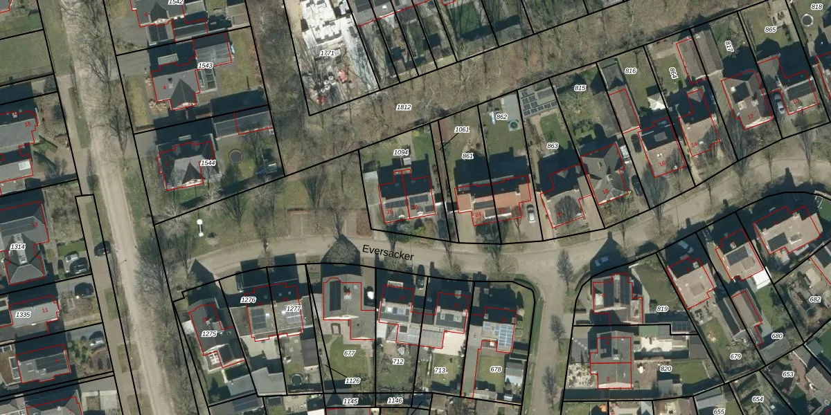 Het perceel waarop Eversacker 26 staat heeft een oppervlakte van 440 m². Dit is een groot perceel. De perceeloppervlakte wordt geregistreerd door het Kadaster. Gedetailleerde informatie over de maten van dit perceel kunt u vinden in het rapport Kadastrale kaart met maatvoering van Eversacker 26.
