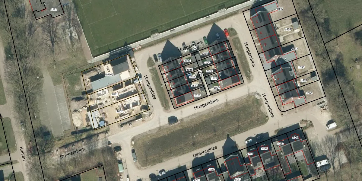 Het perceel waarop Hoogendries 17 staat heeft een oppervlakte van 94 m². Dit is een klein perceel. De perceeloppervlakte wordt geregistreerd door het Kadaster. Gedetailleerde informatie over de maten van dit perceel kunt u vinden in het rapport Kadastrale kaart met maatvoering van Hoogendries 17.