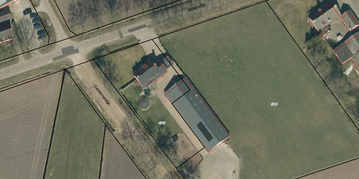 Het perceel waarop Molendijk 4-a staat heeft een oppervlakte van 1940 m². Dit is een zeer groot perceel. De perceeloppervlakte wordt geregistreerd door het Kadaster. Gedetailleerde informatie over de maten van dit perceel kunt u vinden in het rapport Kadastrale kaart met maatvoering van Molendijk 4-a.