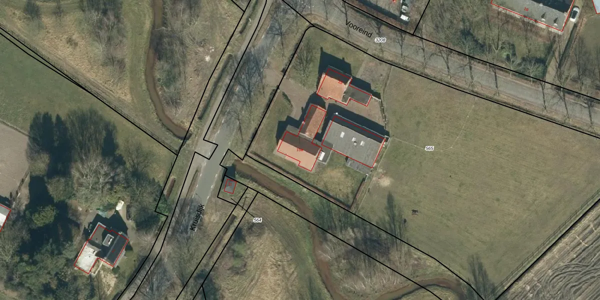 Het perceel waarop Vooreind 15-a staat heeft een oppervlakte van 5810 m². Dit is een zeer groot perceel. De perceeloppervlakte wordt geregistreerd door het Kadaster. Gedetailleerde informatie over de maten van dit perceel kunt u vinden in het rapport Kadastrale kaart met maatvoering van Vooreind 15-a.