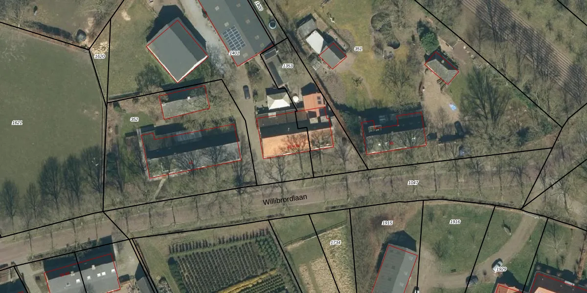 Het perceel waarop Willibrordlaan 43 staat heeft een oppervlakte van 6167 m². Dit is een zeer groot perceel. De perceeloppervlakte wordt geregistreerd door het Kadaster. Gedetailleerde informatie over de maten van dit perceel kunt u vinden in het rapport Kadastrale kaart met maatvoering van Willibrordlaan 43.