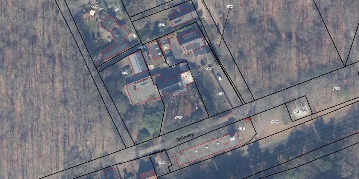Het perceel waarop Oudeweg 120 staat heeft een oppervlakte van 1030 m². Dit is een zeer groot perceel. De perceeloppervlakte wordt geregistreerd door het Kadaster. Gedetailleerde informatie over de maten van dit perceel kunt u vinden in het rapport Kadastrale kaart met maatvoering van Oudeweg 120.