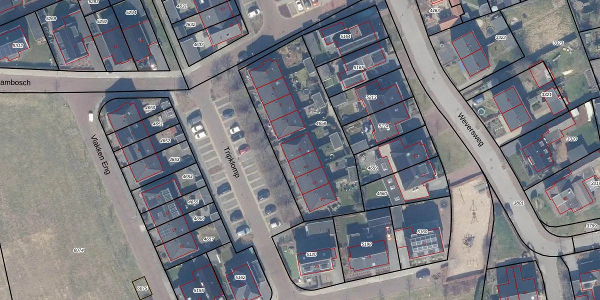 Het perceel waarop Tripklomp 9 staat heeft een oppervlakte van 1375 m². Dit is een zeer groot perceel. De perceeloppervlakte wordt geregistreerd door het Kadaster. Gedetailleerde informatie over de maten van dit perceel kunt u vinden in het rapport Kadastrale kaart met maatvoering van Tripklomp 9.