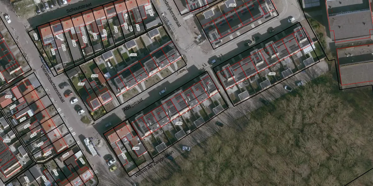 Het perceel waarop Abdijstraat 16 staat heeft een oppervlakte van 1185 m². Dit is een zeer groot perceel. De perceeloppervlakte wordt geregistreerd door het Kadaster. Gedetailleerde informatie over de maten van dit perceel kunt u vinden in het rapport Kadastrale kaart met maatvoering van Abdijstraat 16.