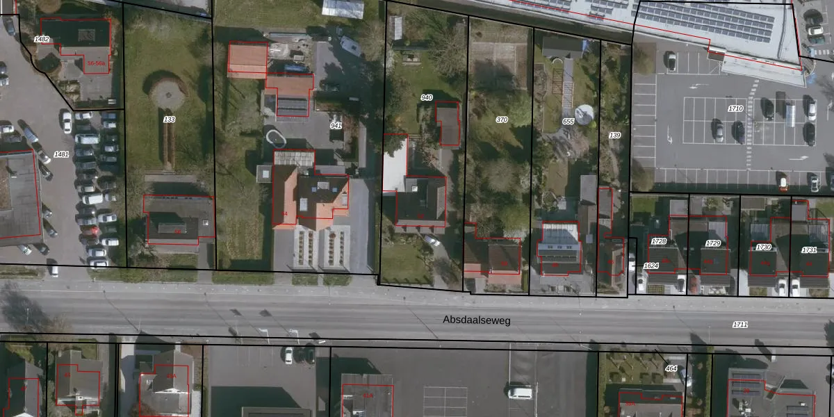 Het perceel waarop Absdaalseweg 52 staat heeft een oppervlakte van 1355 m². Dit is een zeer groot perceel. De perceeloppervlakte wordt geregistreerd door het Kadaster. Gedetailleerde informatie over de maten van dit perceel kunt u vinden in het rapport Kadastrale kaart met maatvoering van Absdaalseweg 52.