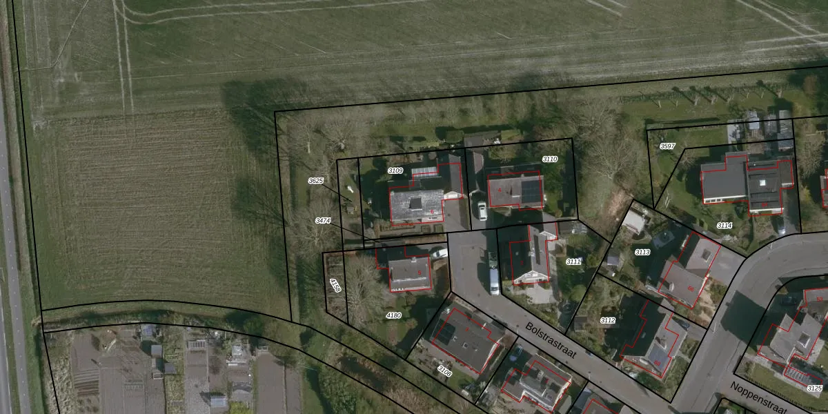 Gebruik de zoekbalk of klik op een perceel voor informatie over de adressen binnen dit perceel.