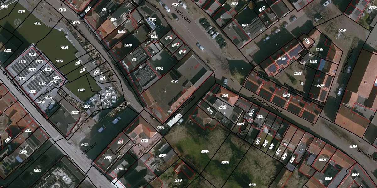 Bontehondstraat 16 is gelegen op kadastraal perceel HUL00A3034. Deze kadastrale aanduiding is uniek en wordt gebruikt door het Kadaster om eigendomsrechten en andere zakelijke rechten vast te leggen. Het perceel maakt onderdeel uit van de kadastrale gemeente Hulst.