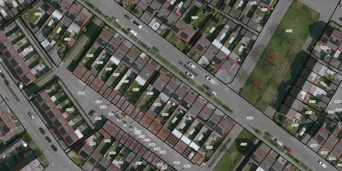 Het perceel waarop de Butstraat 33 staat heeft een oppervlakte van 218 m². Dit is een middelgroot perceel. De perceeloppervlakte wordt geregistreerd door het Kadaster. Gedetailleerde informatie over de maten van dit perceel kunt u vinden in het rapport Kadastrale kaart met maatvoering van de Butstraat 33.