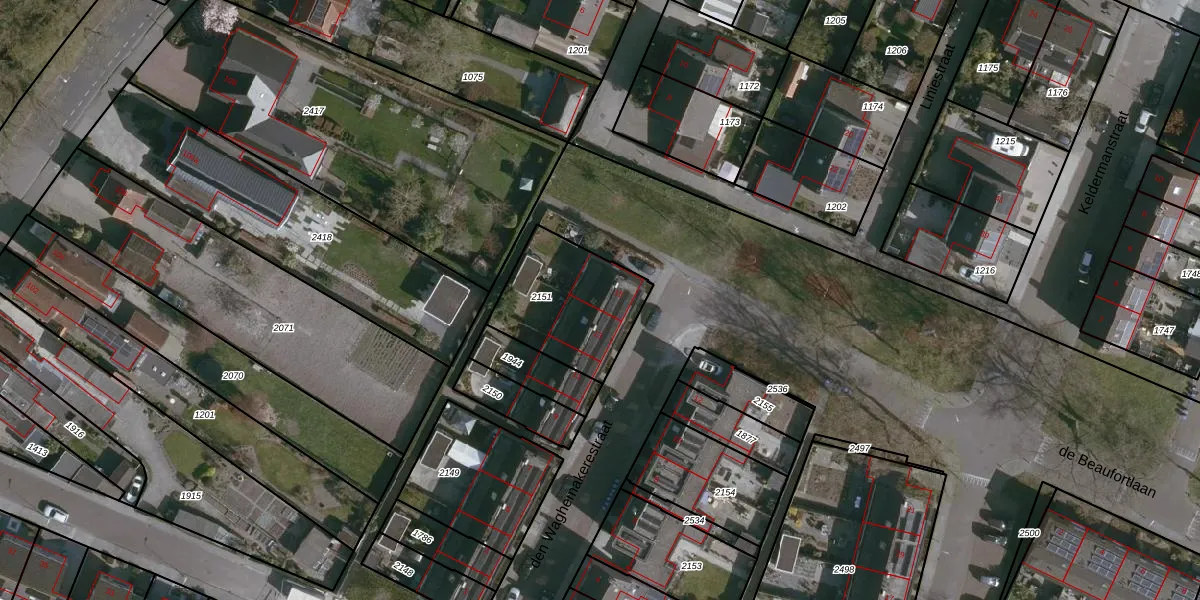 Het perceel waarop den Waghemakerestraat 15 staat heeft een oppervlakte van 400 m². Dit is een groot perceel. De perceeloppervlakte wordt geregistreerd door het Kadaster. Gedetailleerde informatie over de maten van dit perceel kunt u vinden in het rapport Kadastrale kaart met maatvoering van den Waghemakerestraat 15.