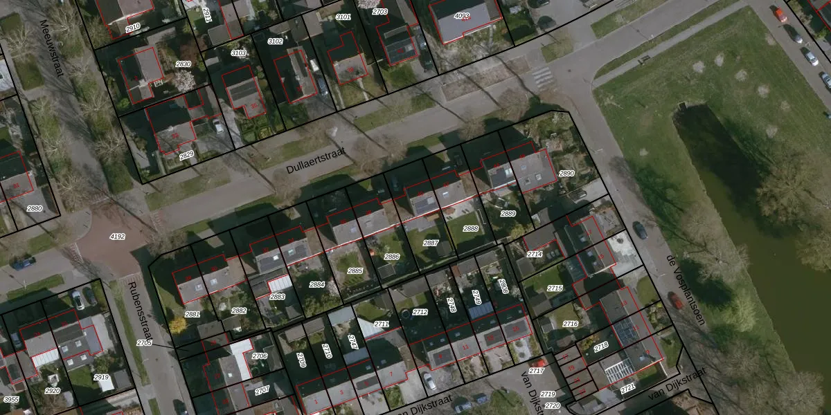 Gebruik de zoekbalk of klik op een perceel voor informatie over de adressen binnen dit perceel.