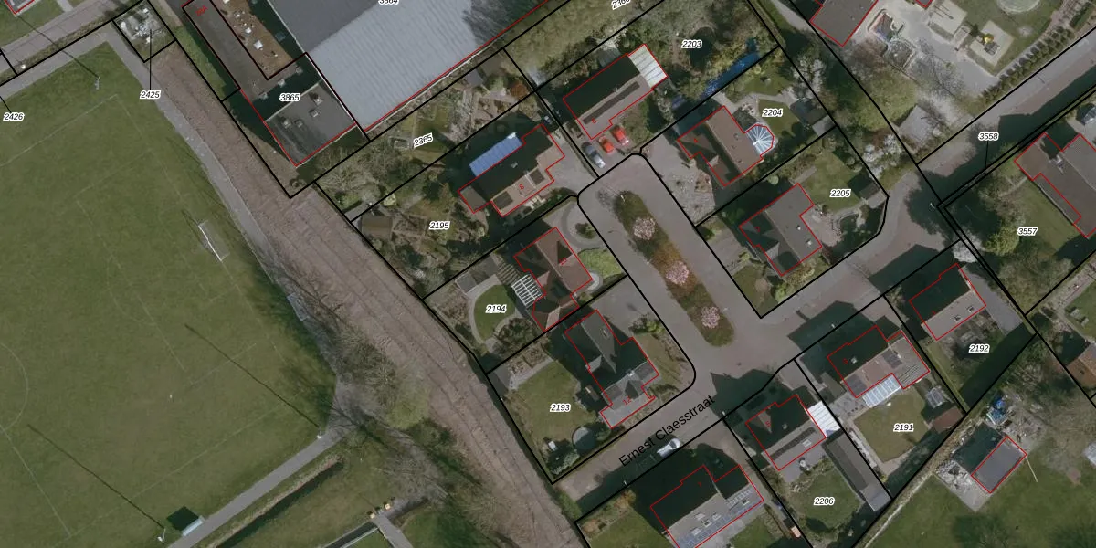 Het perceel waarop Ernest Claesstraat 10 staat heeft een oppervlakte van 575 m². Dit is een groot perceel. De perceeloppervlakte wordt geregistreerd door het Kadaster. Gedetailleerde informatie over de maten van dit perceel kunt u vinden in het rapport Kadastrale kaart met maatvoering van Ernest Claesstraat 10.