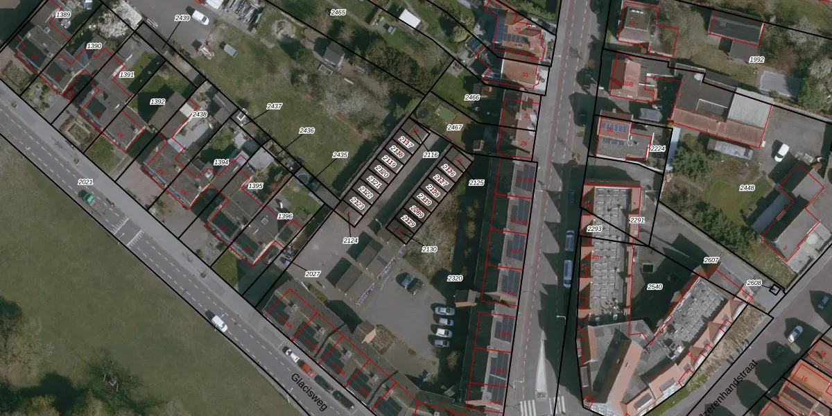 Gebruik de zoekbalk of klik op een perceel voor informatie over de adressen binnen dit perceel.