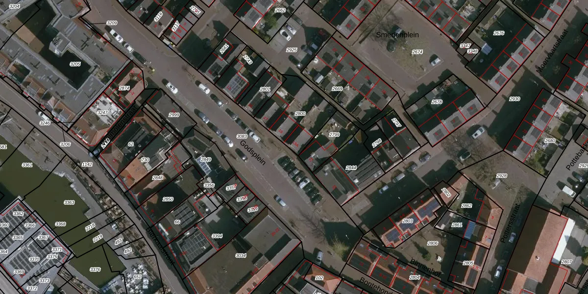 Het perceel waarop Godsplein 19-A staat heeft een oppervlakte van 413 m². Dit is een groot perceel. De perceeloppervlakte wordt geregistreerd door het Kadaster. Gedetailleerde informatie over de maten van dit perceel kunt u vinden in het rapport Kadastrale kaart met maatvoering van Godsplein 19-A.