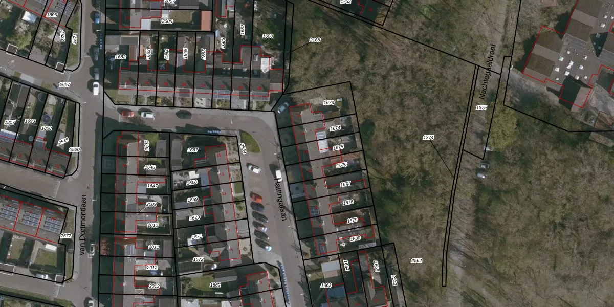 Hattingalaan 12 is gelegen op kadastraal perceel HUL00B1675. Deze kadastrale aanduiding is uniek en wordt gebruikt door het Kadaster om eigendomsrechten en andere zakelijke rechten vast te leggen. Het perceel maakt onderdeel uit van de kadastrale gemeente Hulst.