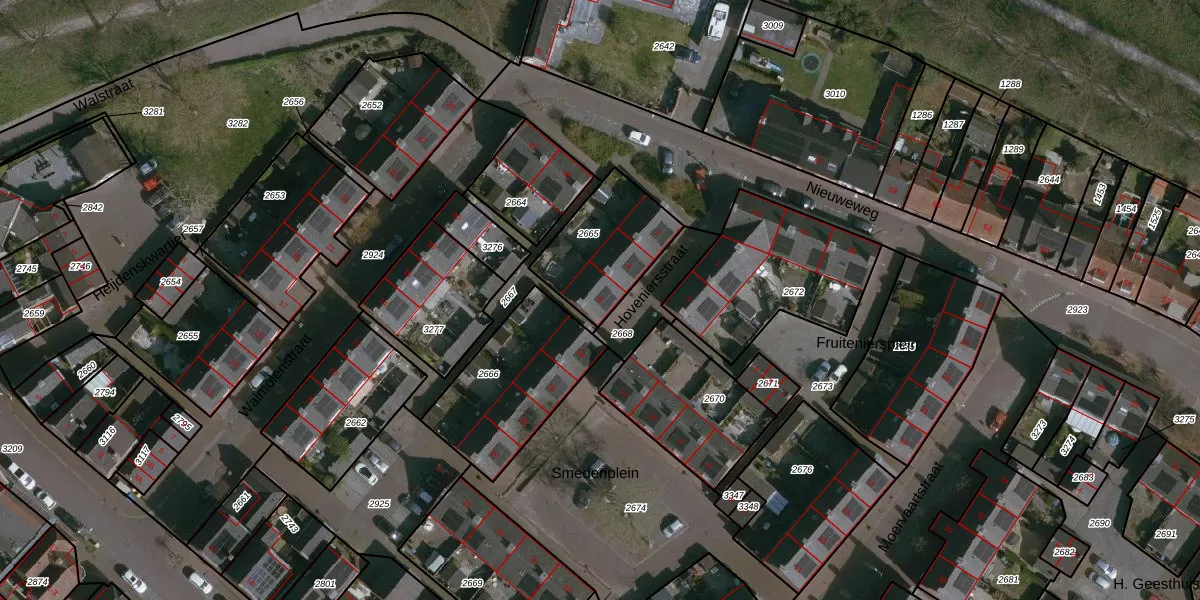 Het perceel waarop Hoveniersstraat 6 staat heeft een oppervlakte van 340 m². Dit is een groot perceel. De perceeloppervlakte wordt geregistreerd door het Kadaster. Gedetailleerde informatie over de maten van dit perceel kunt u vinden in het rapport Kadastrale kaart met maatvoering van Hoveniersstraat 6.