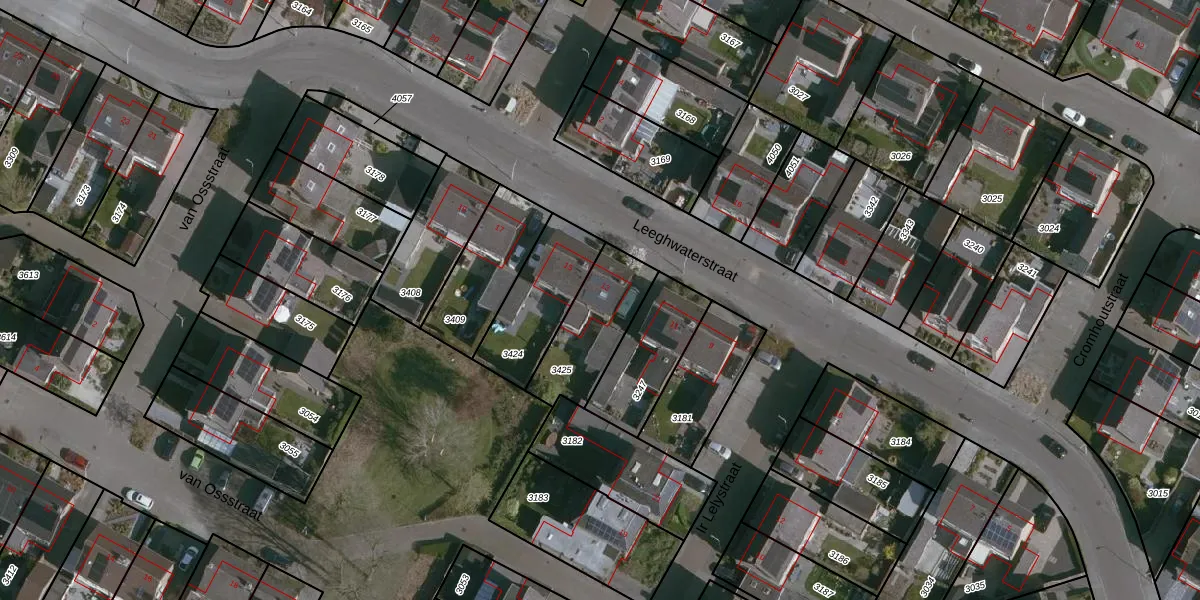 Gebruik de zoekbalk of klik op een perceel voor informatie over de adressen binnen dit perceel.