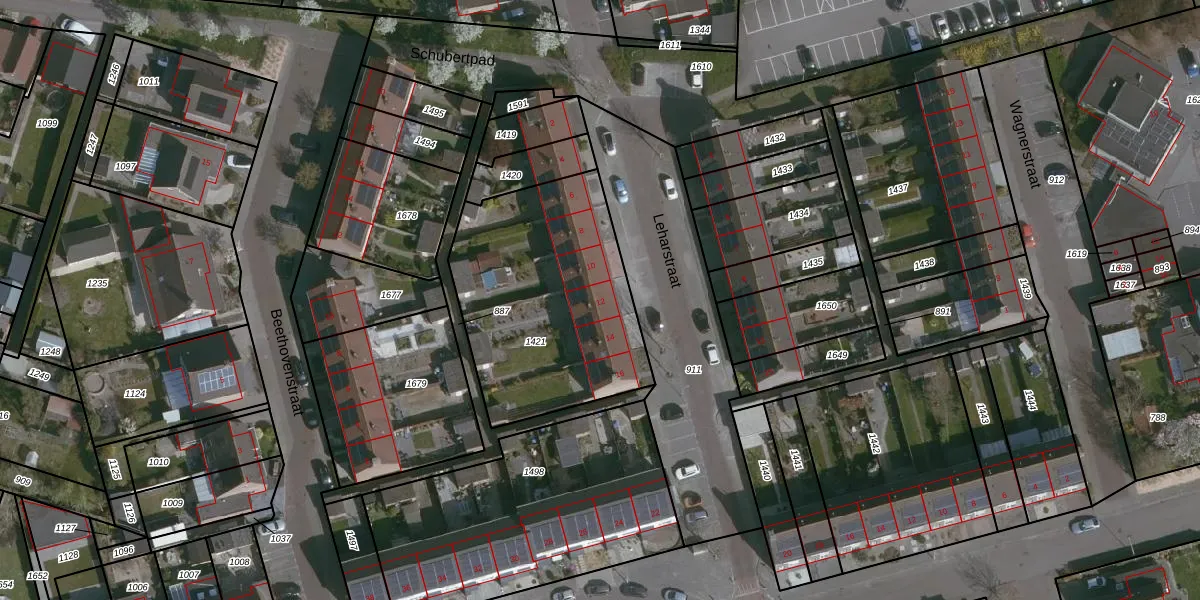 Het perceel waarop Leharstraat 12 staat heeft een oppervlakte van 1026 m². Dit is een zeer groot perceel. De perceeloppervlakte wordt geregistreerd door het Kadaster. Gedetailleerde informatie over de maten van dit perceel kunt u vinden in het rapport Kadastrale kaart met maatvoering van Leharstraat 12.