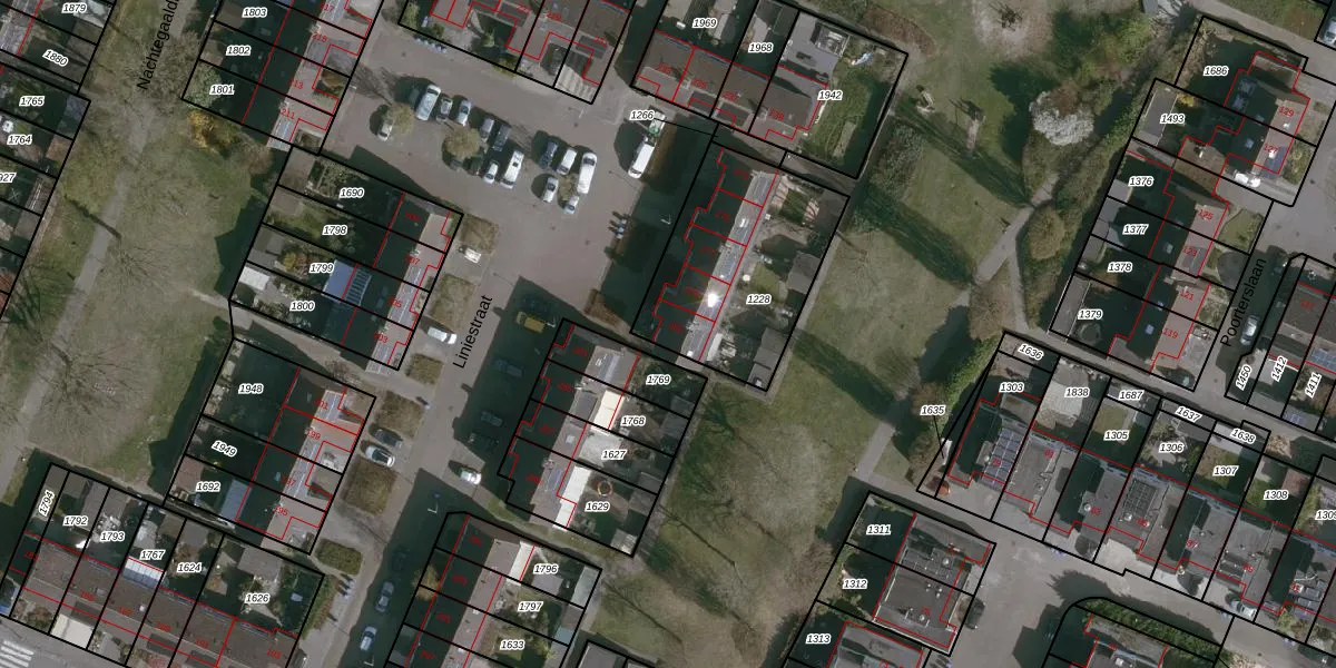Het perceel waarop Liniestraat 281 staat heeft een oppervlakte van 700 m². Dit is een groot perceel. De perceeloppervlakte wordt geregistreerd door het Kadaster. Gedetailleerde informatie over de maten van dit perceel kunt u vinden in het rapport Kadastrale kaart met maatvoering van Liniestraat 281.