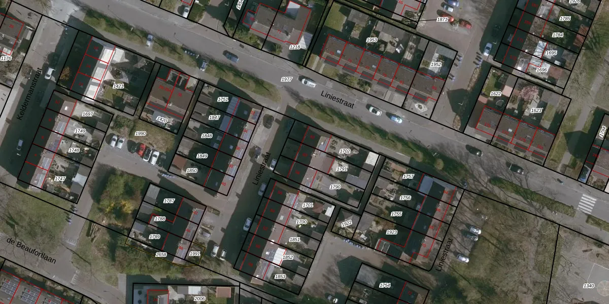 Het perceel waarop Liniestraat 60 staat heeft een oppervlakte van 186 m². Dit is een middelgroot perceel. De perceeloppervlakte wordt geregistreerd door het Kadaster. Gedetailleerde informatie over de maten van dit perceel kunt u vinden in het rapport Kadastrale kaart met maatvoering van Liniestraat 60.