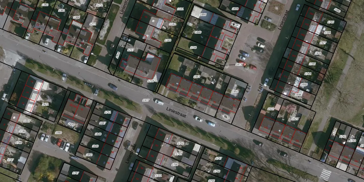 Het perceel waarop Liniestraat 75 staat heeft een oppervlakte van 820 m². Dit is een groot perceel. De perceeloppervlakte wordt geregistreerd door het Kadaster. Gedetailleerde informatie over de maten van dit perceel kunt u vinden in het rapport Kadastrale kaart met maatvoering van Liniestraat 75.