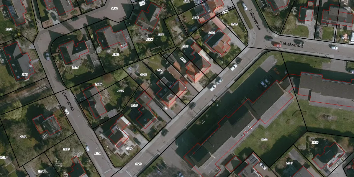 Gebruik de zoekbalk of klik op een perceel voor informatie over de adressen binnen dit perceel.