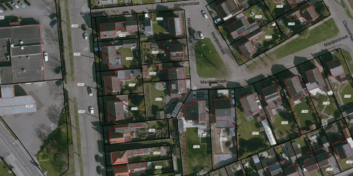 Het perceel waarop Marijkestraat 15 staat heeft een oppervlakte van 515 m². Dit is een groot perceel. De perceeloppervlakte wordt geregistreerd door het Kadaster. Gedetailleerde informatie over de maten van dit perceel kunt u vinden in het rapport Kadastrale kaart met maatvoering van Marijkestraat 15.
