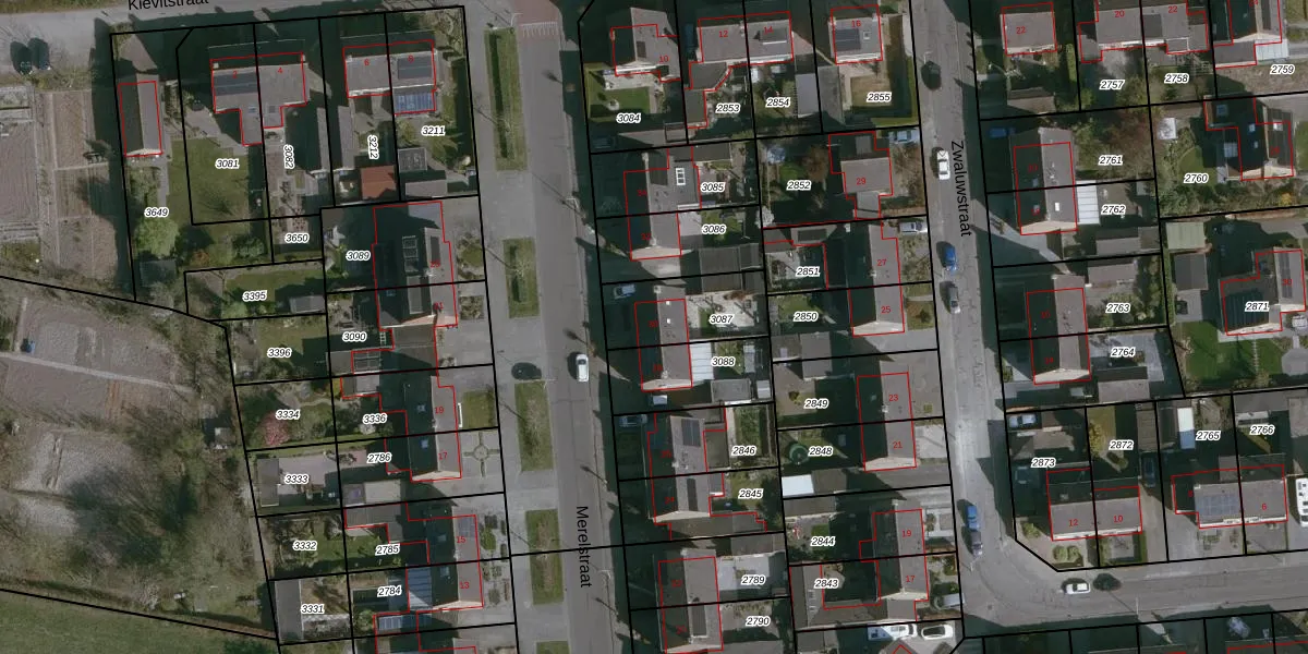 Gebruik de zoekbalk of klik op een perceel voor informatie over de adressen binnen dit perceel.