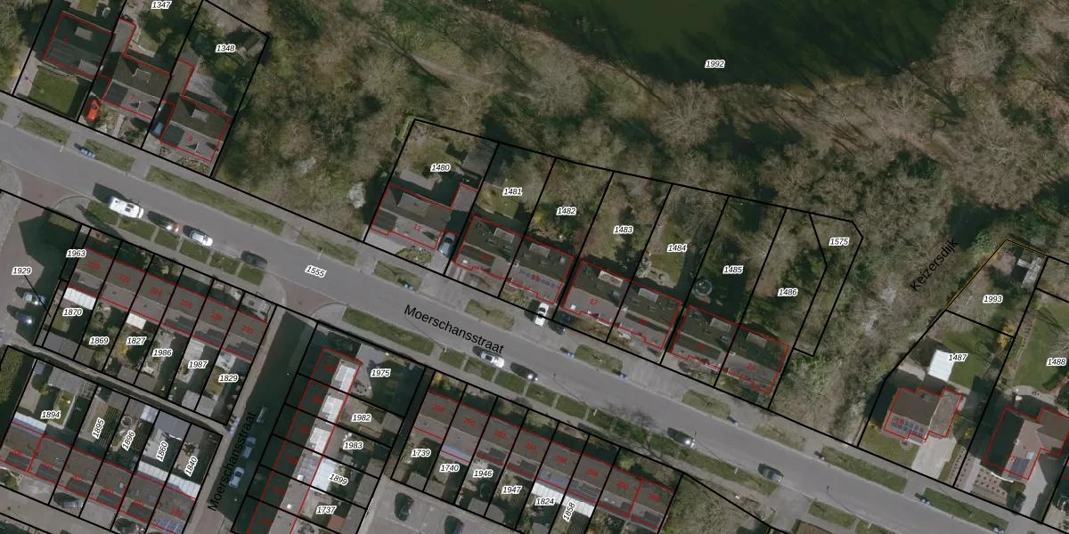 Het perceel waarop Moerschansstraat 15 staat heeft een oppervlakte van 321 m². Dit is een groot perceel. De perceeloppervlakte wordt geregistreerd door het Kadaster. Gedetailleerde informatie over de maten van dit perceel kunt u vinden in het rapport Kadastrale kaart met maatvoering van Moerschansstraat 15.
