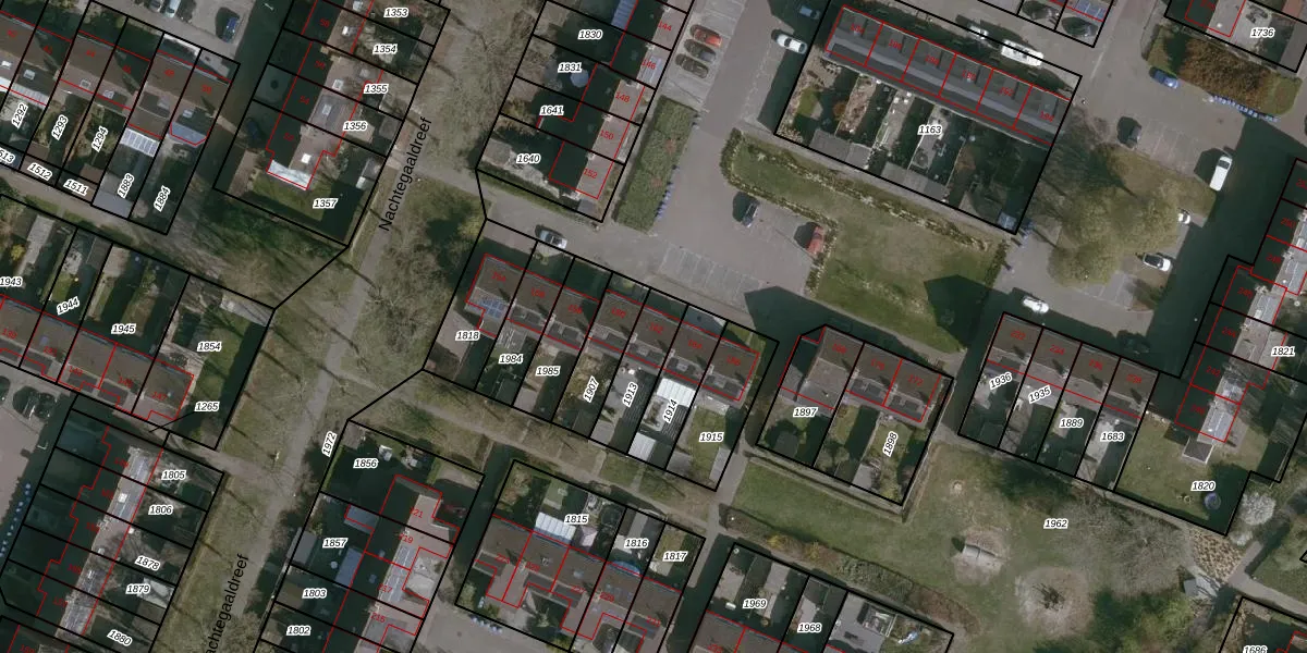 Gebruik de zoekbalk of klik op een perceel voor informatie over de adressen binnen dit perceel.