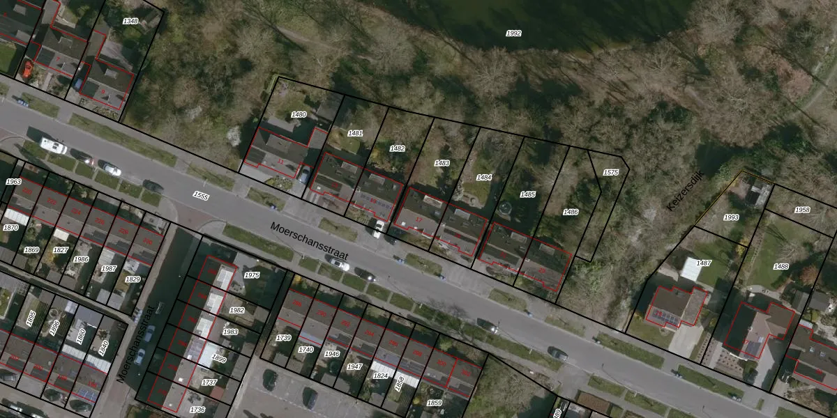 Het perceel waarop Moerschansstraat 17 staat heeft een oppervlakte van 343 m². Dit is een groot perceel. De perceeloppervlakte wordt geregistreerd door het Kadaster. Gedetailleerde informatie over de maten van dit perceel kunt u vinden in het rapport Kadastrale kaart met maatvoering van Moerschansstraat 17.