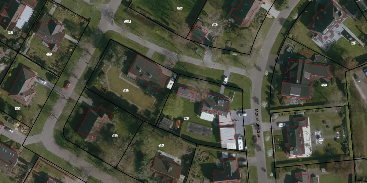 Het perceel waarop Moersluisstraat 8-mz staat heeft een oppervlakte van 1445 m². Dit is een zeer groot perceel. De perceeloppervlakte wordt geregistreerd door het Kadaster. Gedetailleerde informatie over de maten van dit perceel kunt u vinden in het rapport Kadastrale kaart met maatvoering van Moersluisstraat 8-mz.