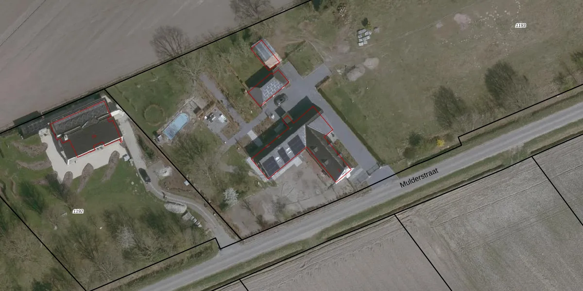 Het perceel waarop Mulderstraat 2 staat heeft een oppervlakte van 1,5 ha. Dit is een zeer groot perceel. De perceeloppervlakte wordt geregistreerd door het Kadaster. Gedetailleerde informatie over de maten van dit perceel kunt u vinden in het rapport Kadastrale kaart met maatvoering van Mulderstraat 2.