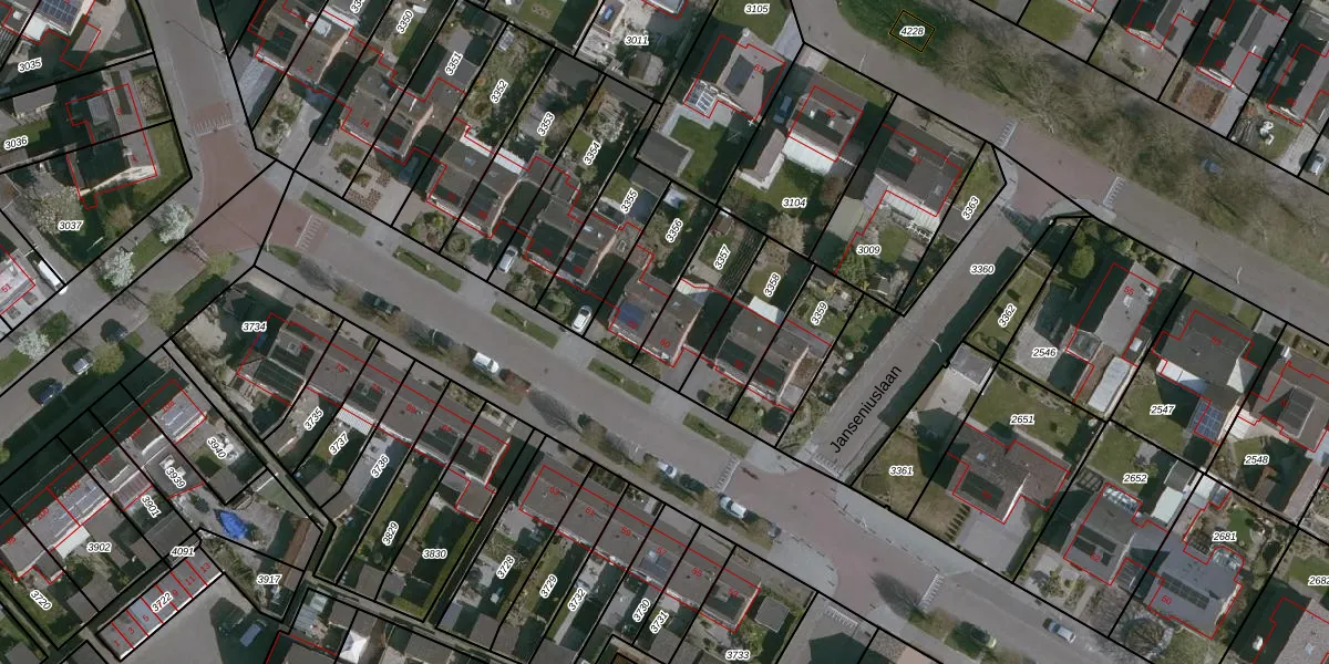 Gebruik de zoekbalk of klik op een perceel voor informatie over de adressen binnen dit perceel.